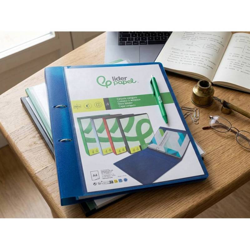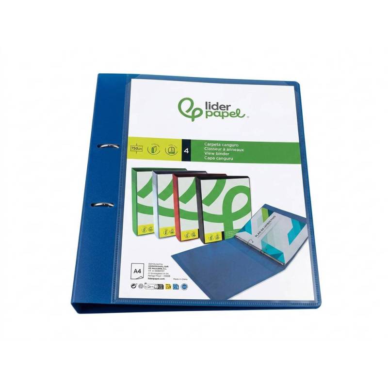 Carpeta liderpapel canguro 2 anillas 25 mm mixtas polipropileno din a4 azul translucido. |