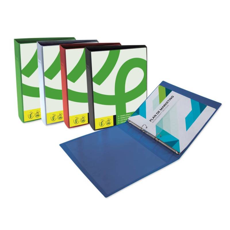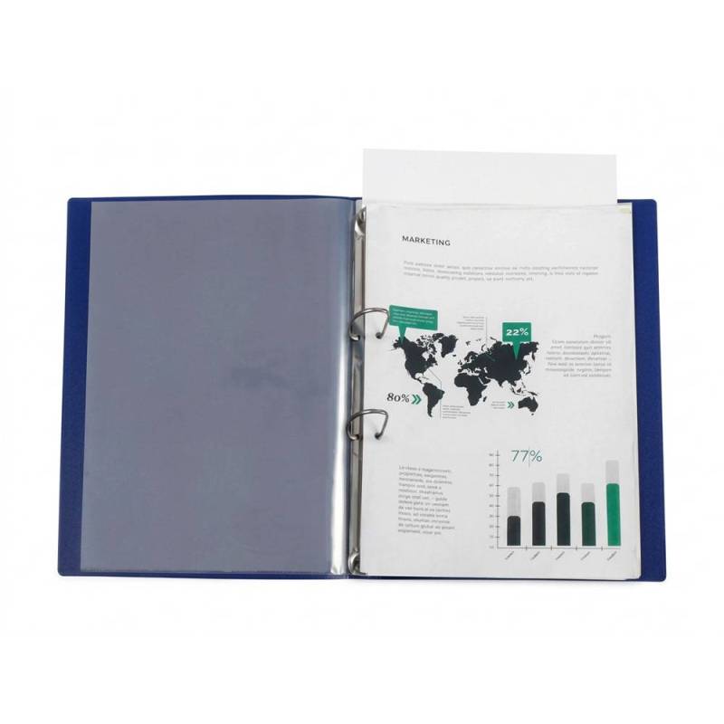 Carpeta de 2 anillas mixtas de 25 mm fabricada en polipropileno. 750 micras. Con funda en la portada que permite su personalización e identificación. Formato din a4. Color azul translucido. Mas colores disponibles |
