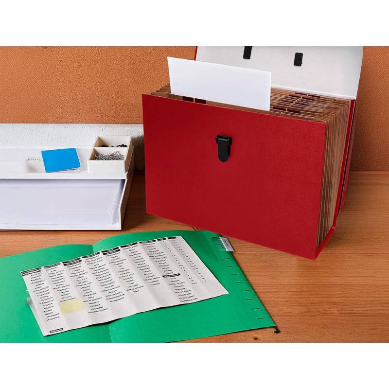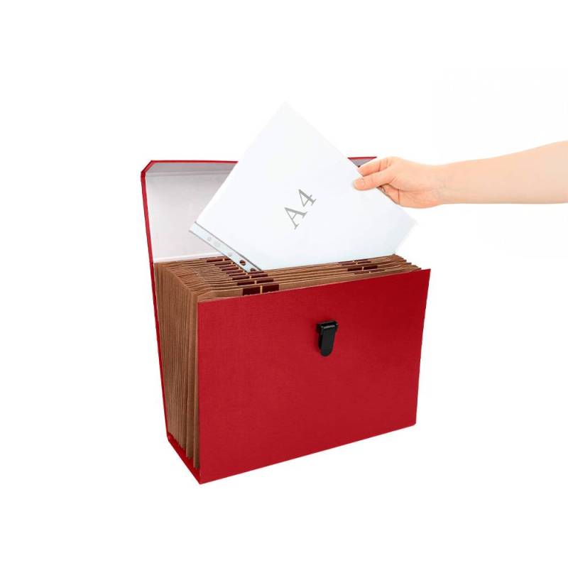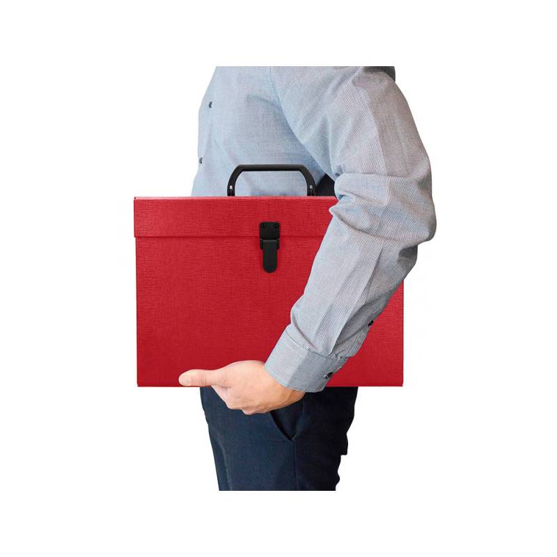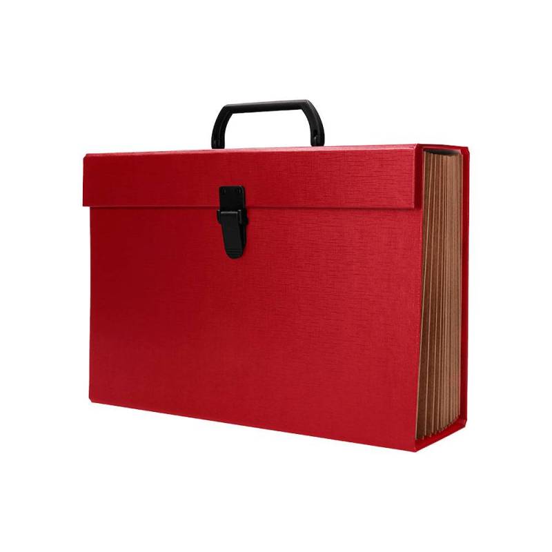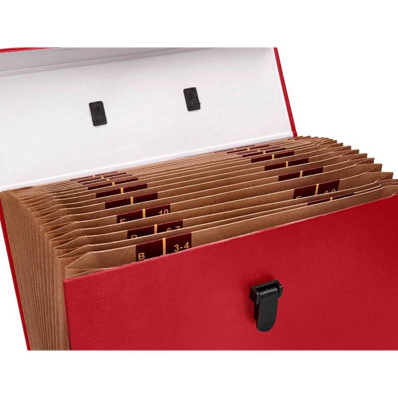 MALETIN LIDERPAPEL CON FUELLE Y ASA CARTON FORRADO 19 DEPARTAMENTOS 255X390X120 MM COLOR ROJO