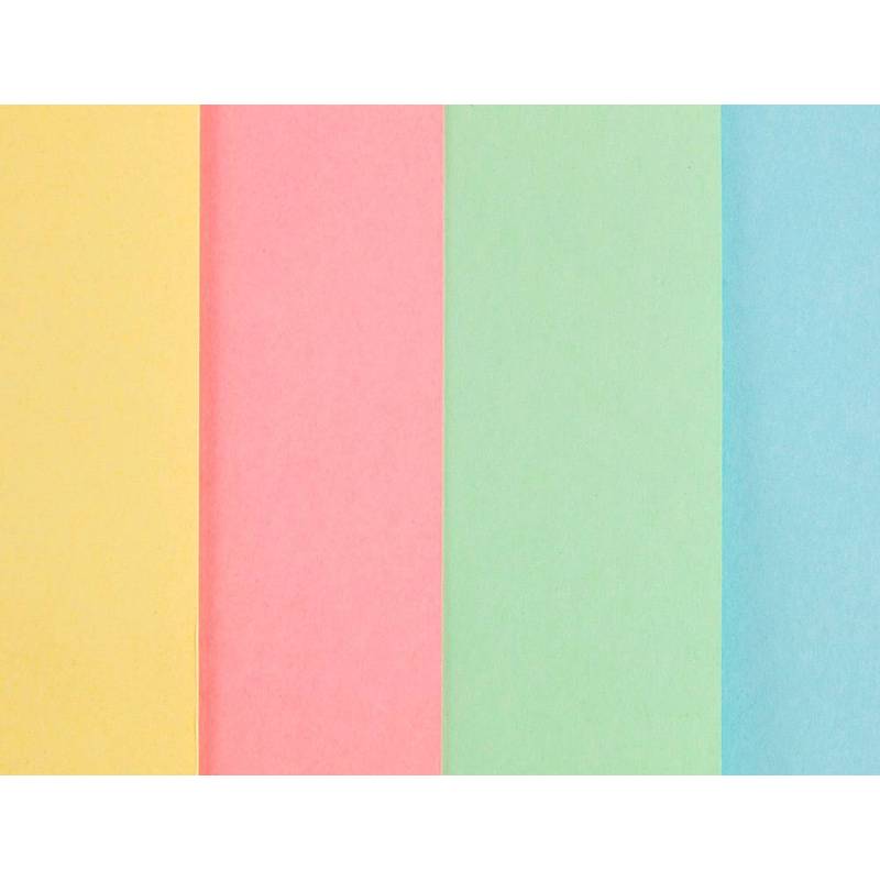 Cartulina Liderpapel. Contiene 4 colores surtidos: Amarillo, Celeste, Rosa y Verde (25 hojas por color). Tamaño DIN A4. Gramaje 180 g/m2. Por su completa gama de colores es un complemento ideal para la utilización escolar. Se pega fácilmente con los pegamentos escolares. Paquete de 100 unidades.