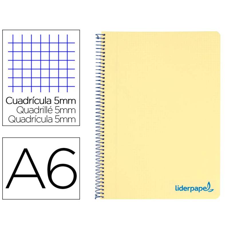 CUADERNO ESPIRAL LIDERPAPEL DIN A6 MICRO WONDER CUADRICULA 5MM 4 BANDAS AMARILLO 120H