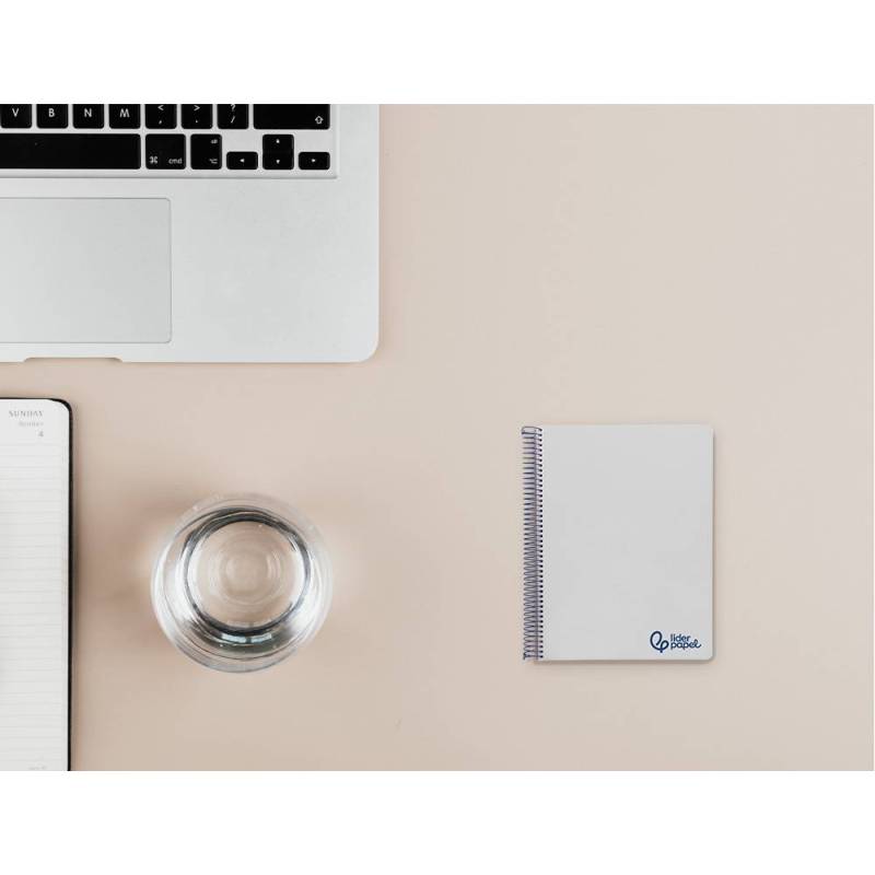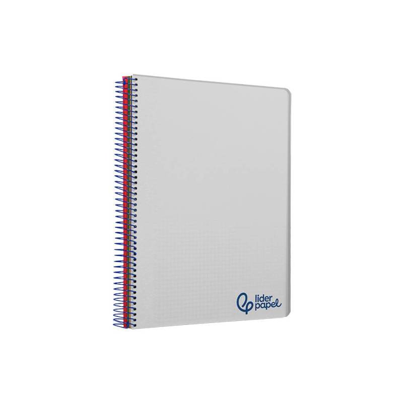 Cuaderno espiral liderpapel a7 micro wonder tapa plastico 100h 90 gr cuadro 5mm 4 bandas color gris.