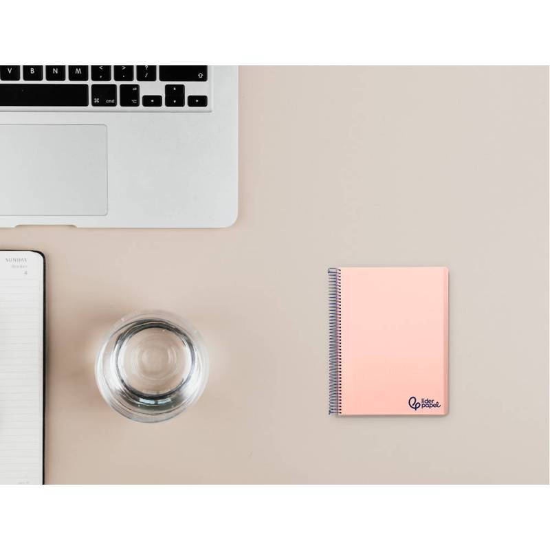 Cuaderno espiral liderpapel a7 micro wonder tapa plastico 100h 90 gr cuadro 5mm 4 bandas color rosa. |