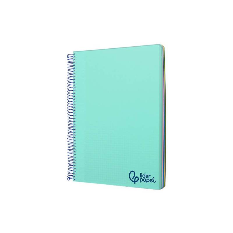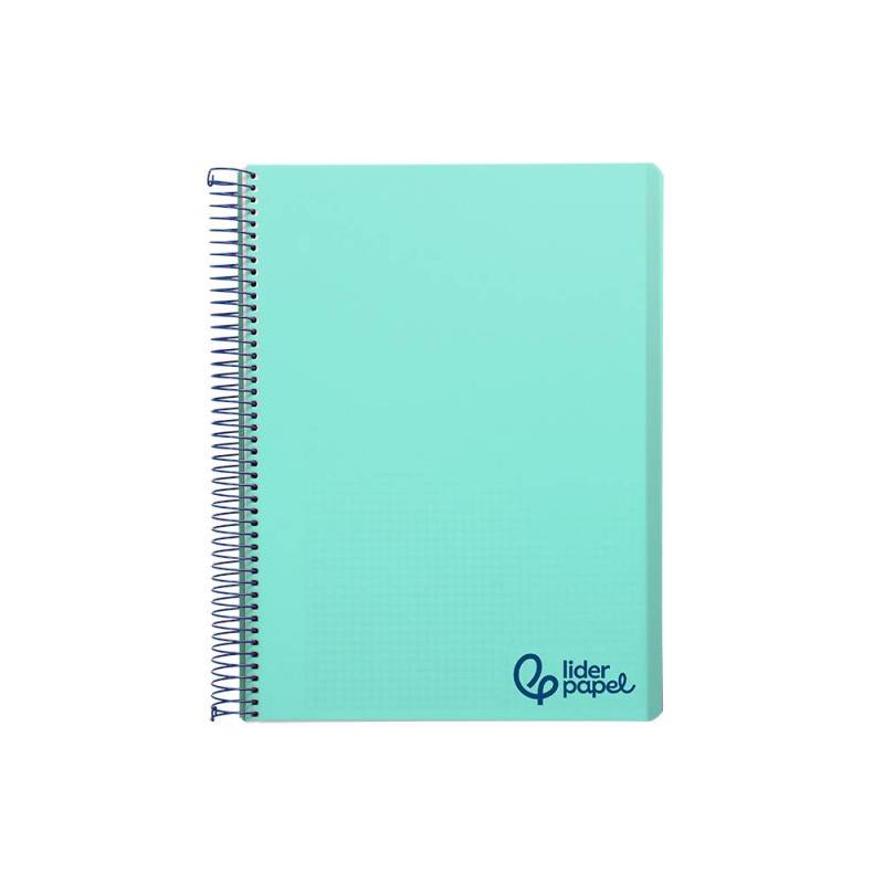 Cuaderno espiral liderpapel a7 micro wonder tapa plastico 100h 90 gr cuadro 5mm 4 bandas color verde. Disponible en más colores.Tapa de polipropileno opaco de 600 micras e impreso. Papel de 90 g/m².