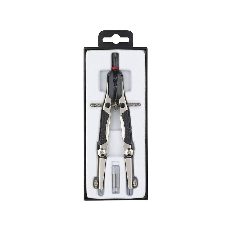 El Compás Rotring Compact Micrométrico de ajuste rápido es una herramienta de alta precisión ideal para profesionales y estudiantes en los campos de la arquitectura, ingeniería y diseño técnico. Su diseño compacto y barnizado en titanio color negro mate no solo proporciona funcionalidad, sino también una estética moderna y profesional.