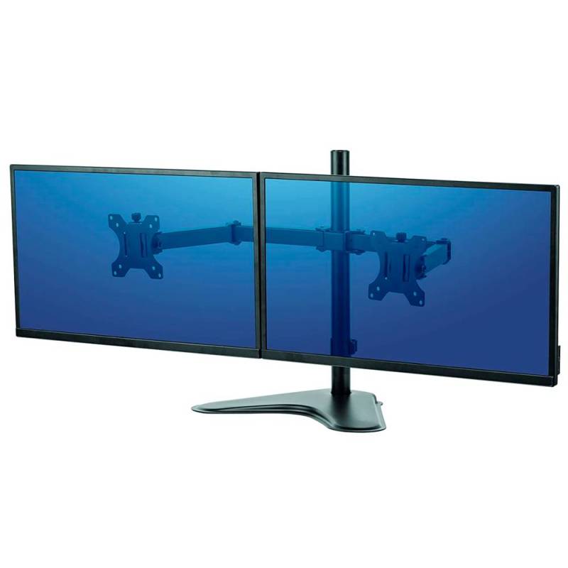 Optimice su espacio de trabajo con este brazo para monitor de la Serie Professional de Fellowes, diseñado para dos pantallas de hasta 27 y 8 kg cada una. Fabricado en acero resistente y con un acabado en negro elegante, este soporte ajustable en altura facilita una postura ergonómica que ayuda a reducir la tensión en ojos, cuello y espalda. Ideal para entornos profesionales, permite una configuración flexible y ordenada gracias a su sistema integrado de gestión de cables. - Capacidad para dos monitores: Soporta dos pantallas con un peso máximo de 8 kg por unidad.
