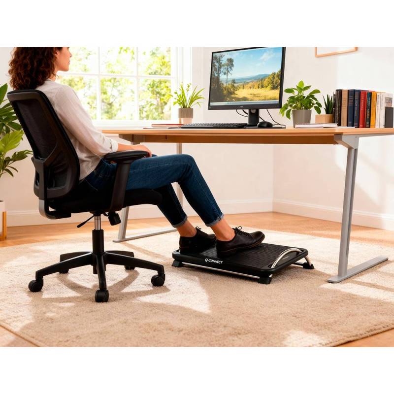 Este reposapiés ergonómico de Q-Connect combina funcionalidad y durabilidad para ofrecer un soporte eficaz durante jornadas prolongadas sentado. Su diseño robusto con barras de acero y superficie fabricada en HIPS proporciona estabilidad y resistencia, mientras que la inclinación ajustable facilita una postura cómoda que favorece la circulación sanguínea y reduce la fatiga muscular.