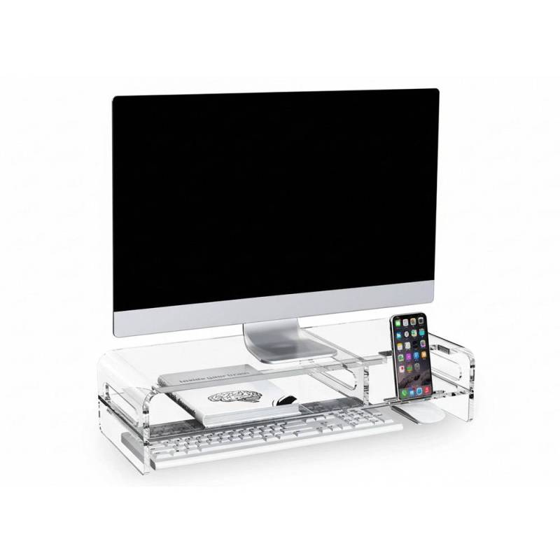 Este soporte para monitor fabricado en metacrilato transparente de alta calidad ofrece una solución elegante y funcional para elevar la pantalla de tu equipo. Con unas dimensiones de 508 x 203 x 114 mm, proporciona la altura adecuada para mejorar la postura durante el trabajo, aliviando la tensión en cuello y hombros. Su diseño minimalista y resistente se integra fácilmente en cualquier espacio, mientras que el espacio libre debajo del soporte permite organizar accesorios o documentos, optimizando el orden en el escritorio.