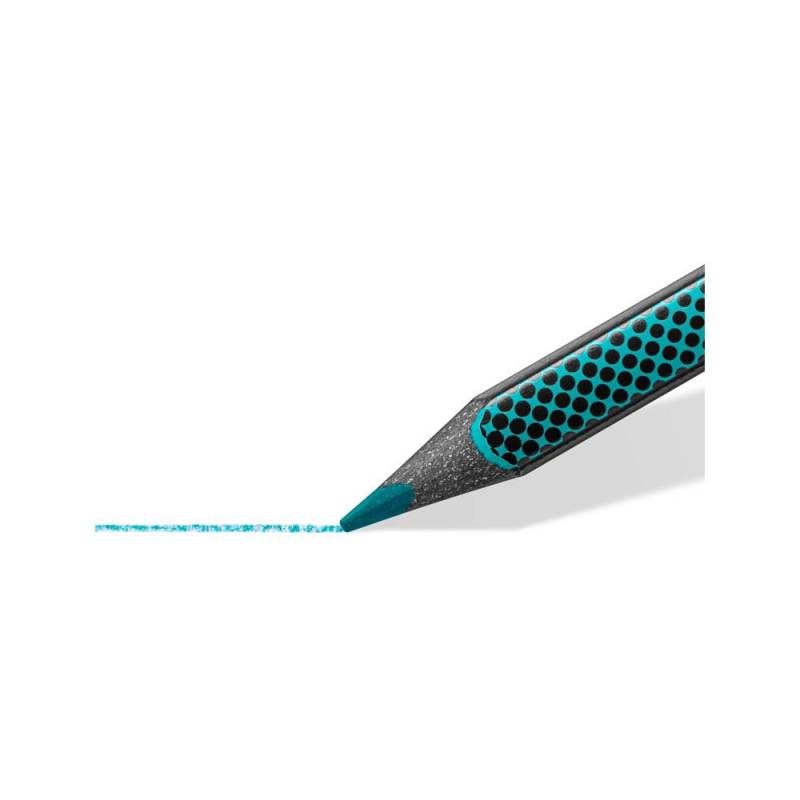 Los lápices de colores Staedtler Noris con forma inteligente, presentados en un estuche de 24 unidades con colores surtidos, ofrecen una experiencia de dibujo cómoda y precisa. Su diseño ergonómico y moderno está pensado para facilitar el agarre y mejorar el control, mientras que sus colores extra intensos garantizan resultados vibrantes en cada trazo. Fabricados en Alemania con materias primas responsables, son ideales tanto para estudiantes como para artistas aficionados que buscan calidad y durabilidad en sus materiales de dibujo.