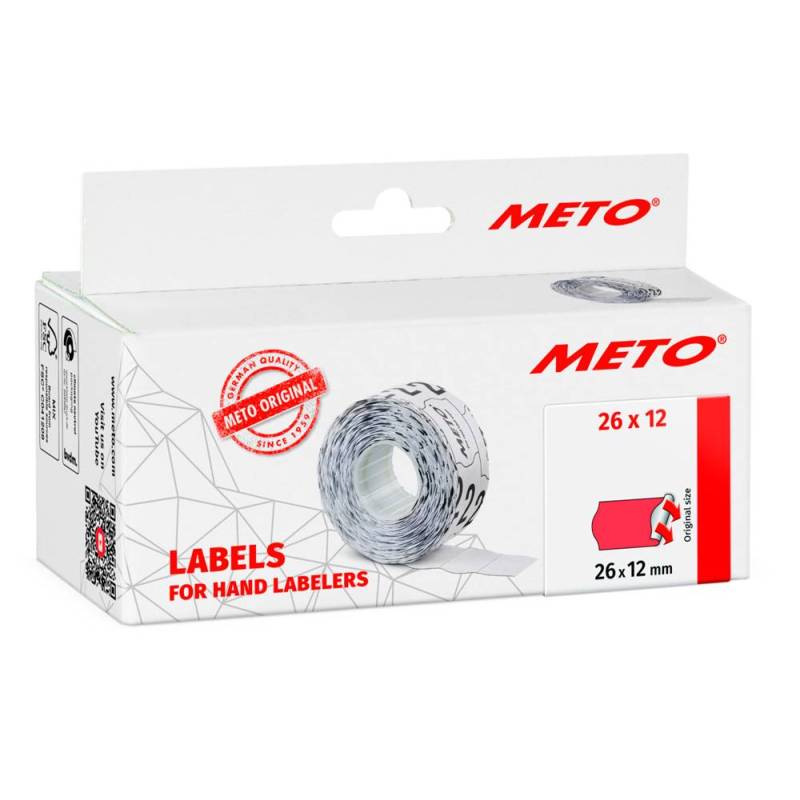 Las etiquetas Meto onduladas de 26x12 mm en color rojo fluorescente ofrecen una solución práctica y eficiente para el etiquetado manual en entornos comerciales. Su diseño ondulado facilita el manejo y aplicación rápida, mientras que el color rojo fluorescente garantiza una alta visibilidad, ideal para destacar precios, códigos o información esencial en productos diversos.