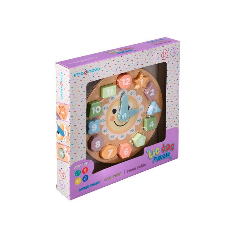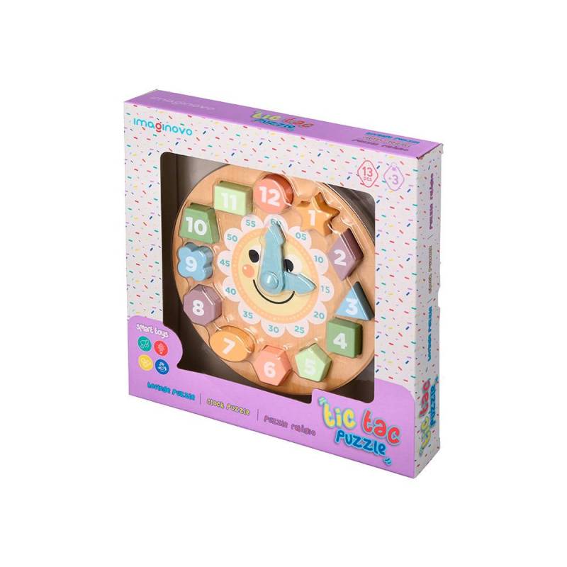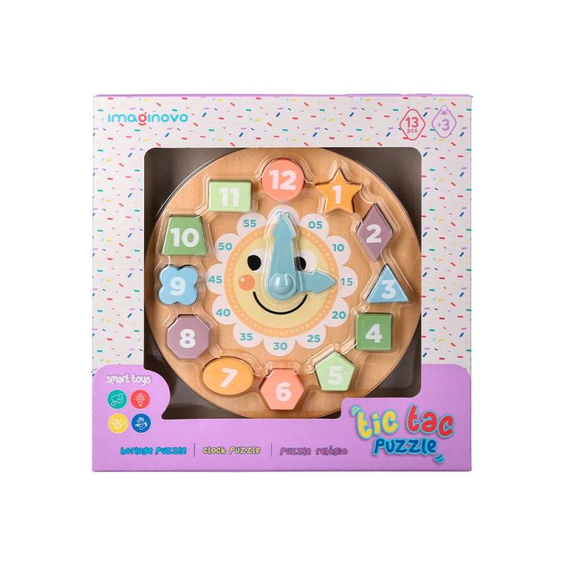 JUEGO INFANTIL MARCA IMAGINOVO MADERA RELOJ +3 AÑOS 13 PIEZAS 29X29X3,5CM
