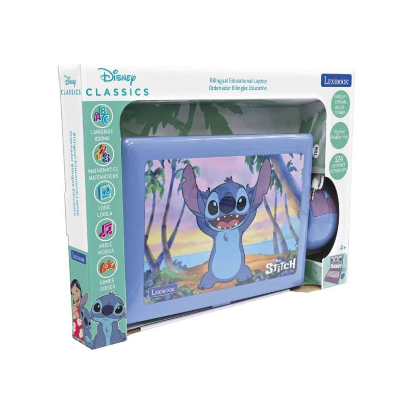 Este ordenador portátil educativo bilingüe combina entretenimiento y aprendizaje en un formato interactivo y accesible para niños en etapa preescolar y primaria. Con un diseño inspirado en el personaje Stitch y una ergonomía adaptada a manos pequeñas, ofrece una experiencia realista y motivadora que impulsa el desarrollo de habilidades en inglés y español a través de 124 actividades variadas.