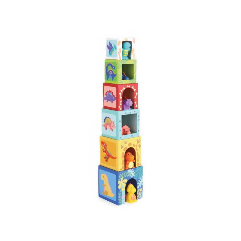 JUEGO INFANTIL MARCA IMAGINOVO CUBOS APILABLES NIDOS DINOSAURIOS +12 MESES 12 PIEZAS 13X13X13CM