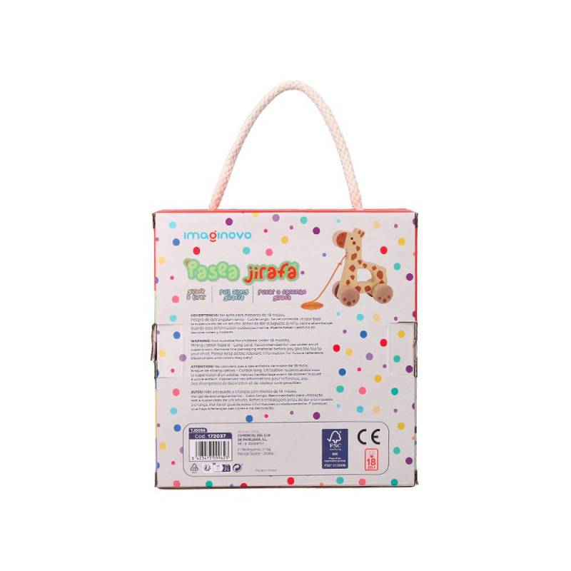 Este juguete no solo ofrece horas de diversión, sino que también apoya el desarrollo temprano a través del juego imaginativo, permitiendo que los niños inventen historias y aventuras con su colorida jirafa de madera. Es una opción perfecta para padres que buscan una alternativa educativa y segura para los momentos de juego de sus hijos. Marca Imaginovo |