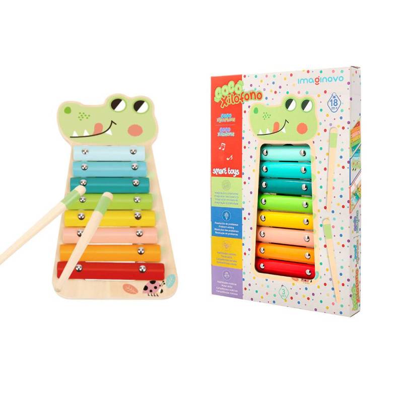 JUEGO INFANTIL MARCA IMAGINOVO MADERA XILOFONO INSTRUMENTO MUSICAL COCODRILO +18 MESES 28X14,8X2,5CM