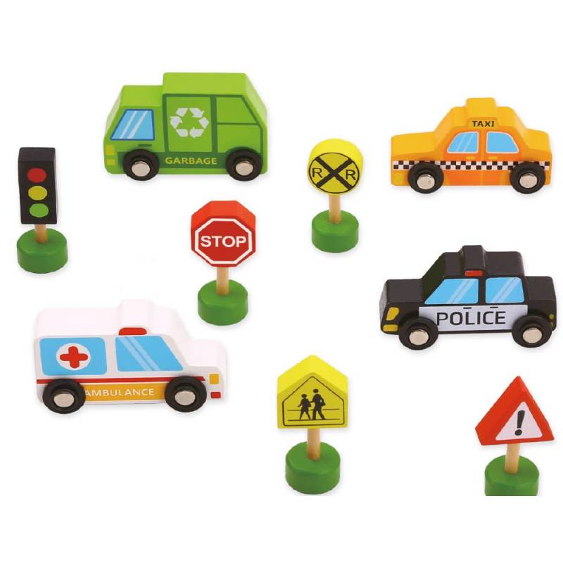 JUEGO INFANTIL MARCA IMAGINOVO MADERA VEHICULOS Y SEÑALES DE TRAFICO +3 AÑOS 16 PIEZAS 30X22X4CM