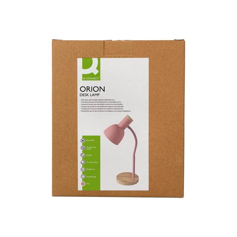 La lámpara de escritorio Q-Connect Orion combina funcionalidad y estilo en un diseño contemporáneo que integra estructura metálica con detalles en madera. Su acabado en color rosa aporta un toque cálido y moderno, ideal para personalizar cualquier espacio de trabajo o estudio. Gracias a su brazo flexible, permite ajustar la dirección de la luz de forma sencilla, facilitando una iluminación focalizada y cómoda para diversas actividades.