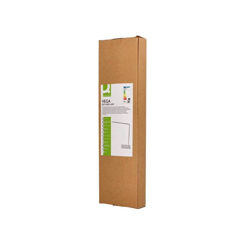 La lámpara de escritorio Q-Connect Vega LED 10W es una solución moderna y eficiente para iluminar espacios de trabajo o estudio. Su diseño compacto y funcional en color blanco combina materiales de calidad como ABS y aluminio, ofreciendo una iluminación ajustable que se adapta a diferentes necesidades visuales. Gracias a su tecnología LED y controles táctiles, proporciona una luz confortable y personalizable con bajo consumo energético.