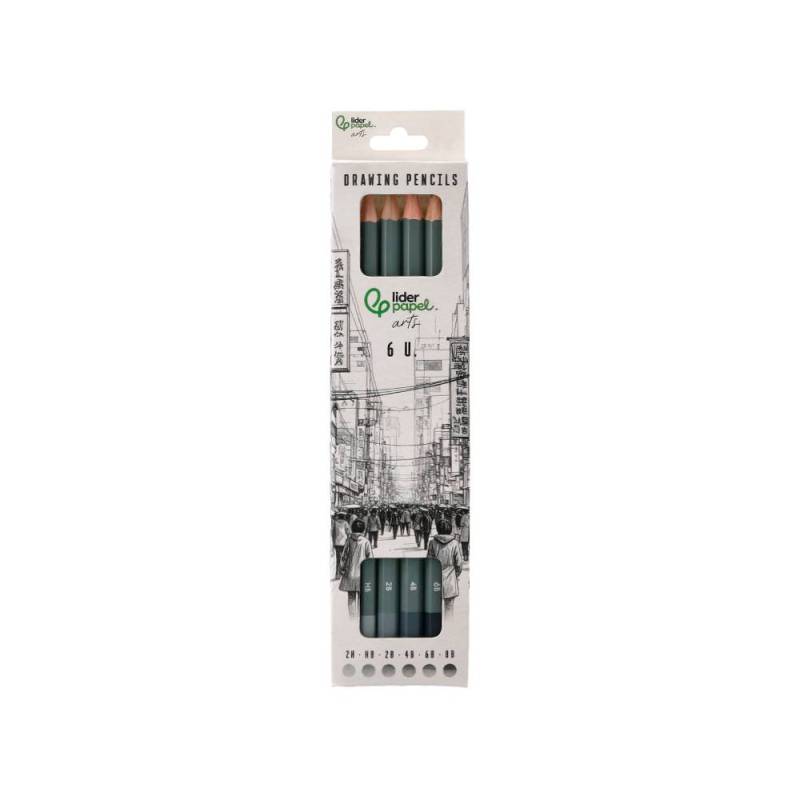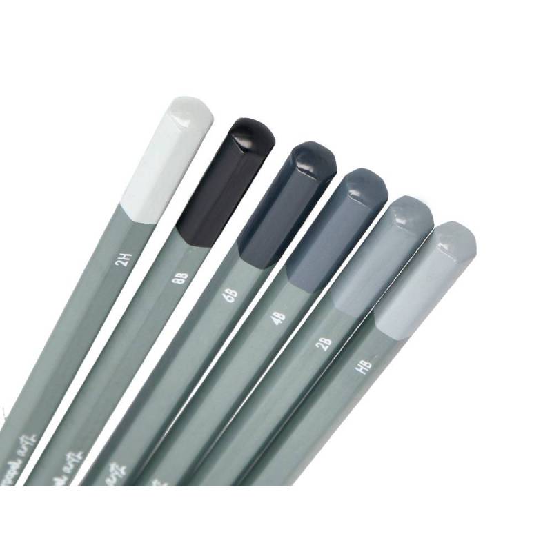 Este set incluye 6 lápices de grafito con durezas surtidas, diseñados para ofrecer una amplia gama de opciones en dibujo, bocetado y escritura. Fabricados con madera certificada FSC, garantizan un origen responsable y sostenible, combinando calidad y cuidado ambiental. La variedad en durezas permite obtener desde trazos suaves y sombreados delicados hasta líneas firmes y definidas, adaptándose a diferentes técnicas y necesidades.