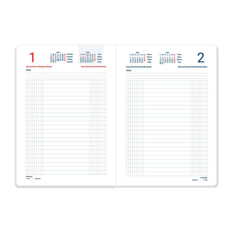 Este dietario para el año 2026 ofrece un diseño funcional y elegante, ideal para quienes buscan una planificación diaria clara y organizada. Su formato compacto y su acabado de calidad lo convierten en una herramienta práctica tanto para el ámbito profesional como personal.