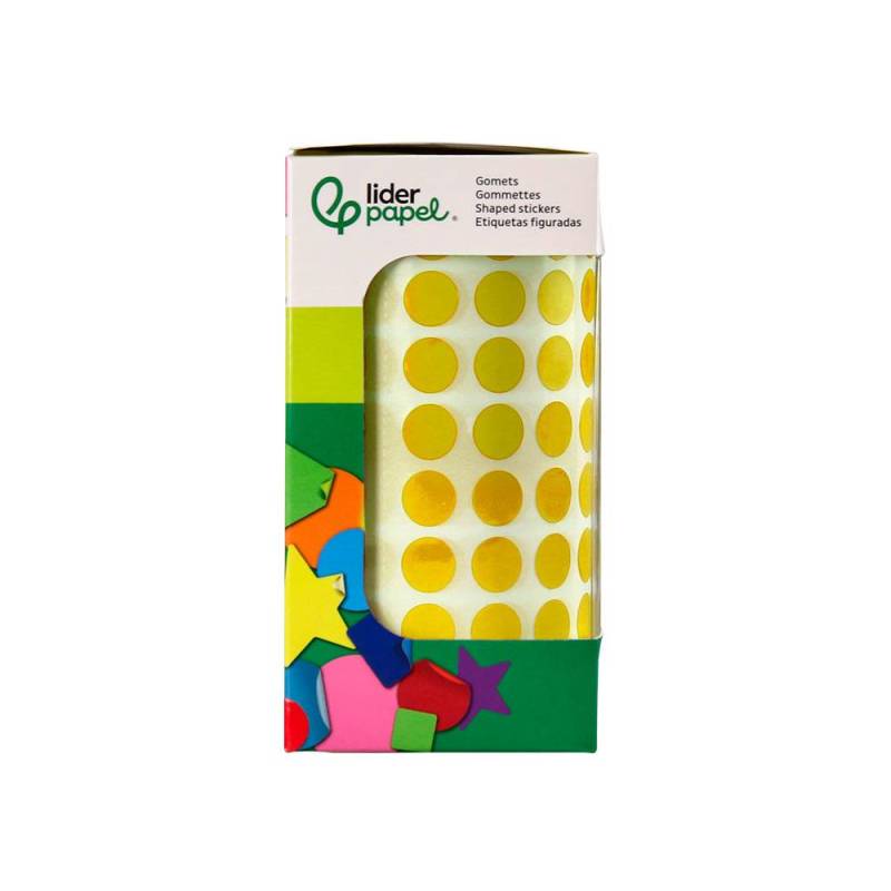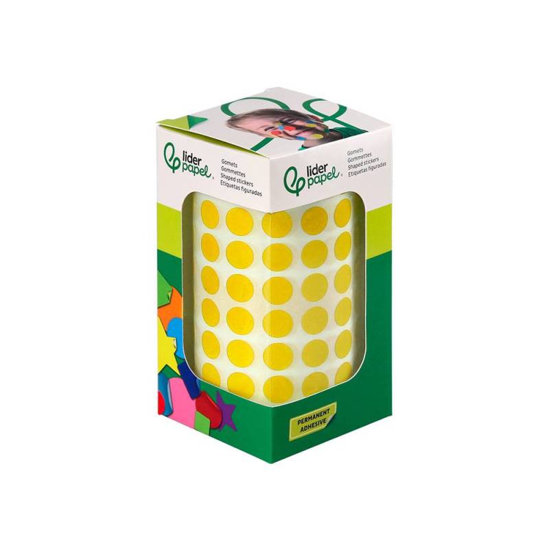 GOMETS MARCA LIDERPAPEL AUTOADHESIVO S CIRCULOS 10,5 MM AMARILLO ROLLO DE 6000 UNIDADES EN CAJA DE CARTON