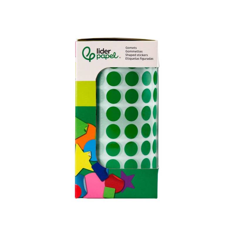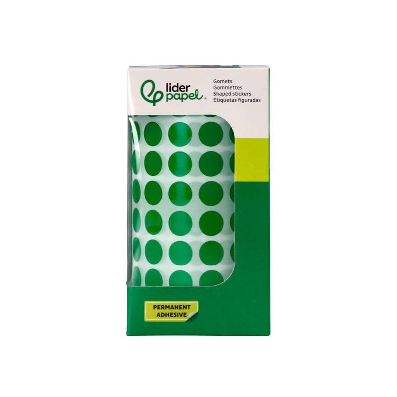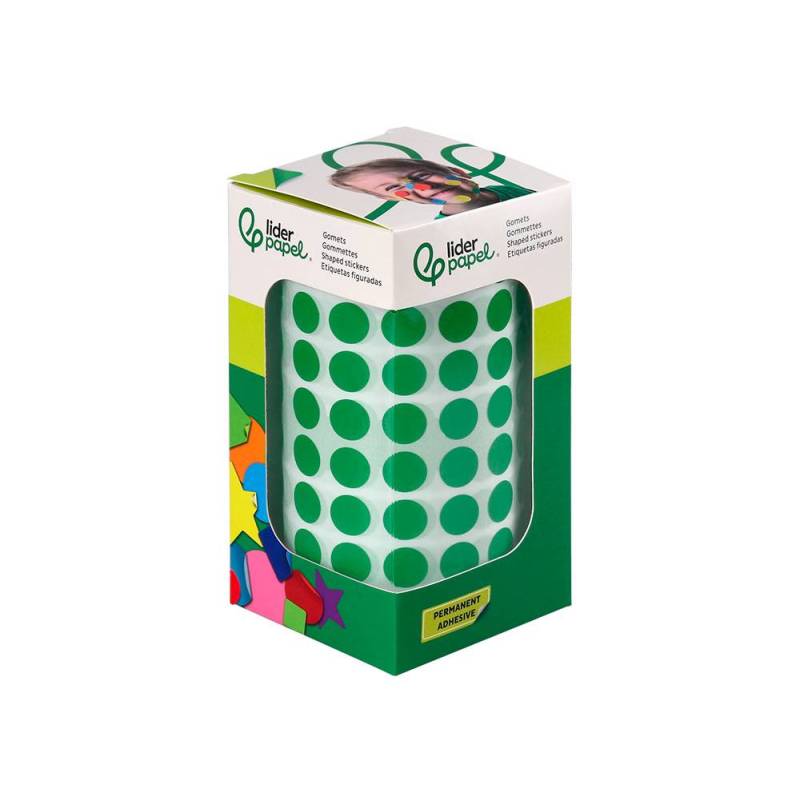 GOMETS MARCA LIDERPAPEL AUTOADHESIVO S CIRCULOS 10,5 MM VERDE ROLLO DE 6000 UNIDADES EN CAJA DE CARTON