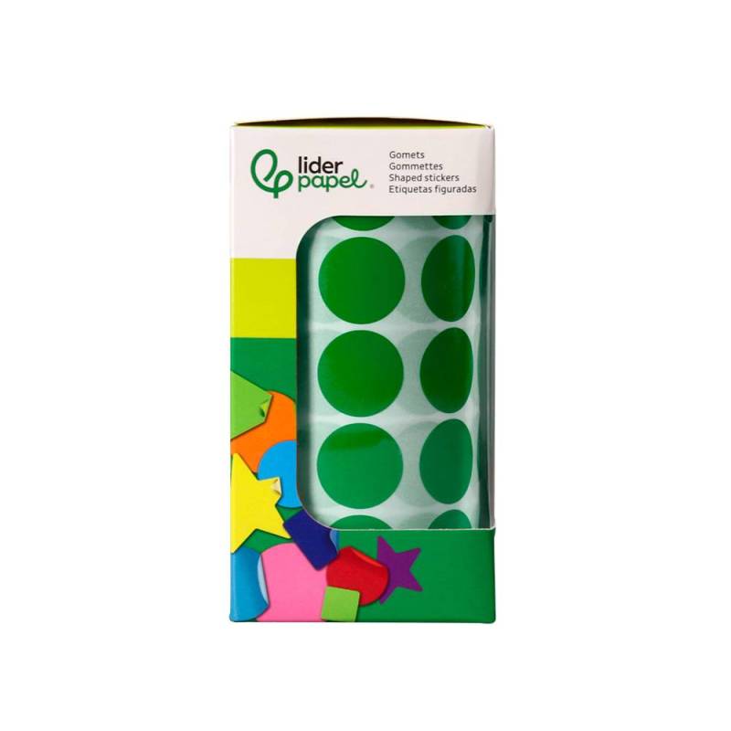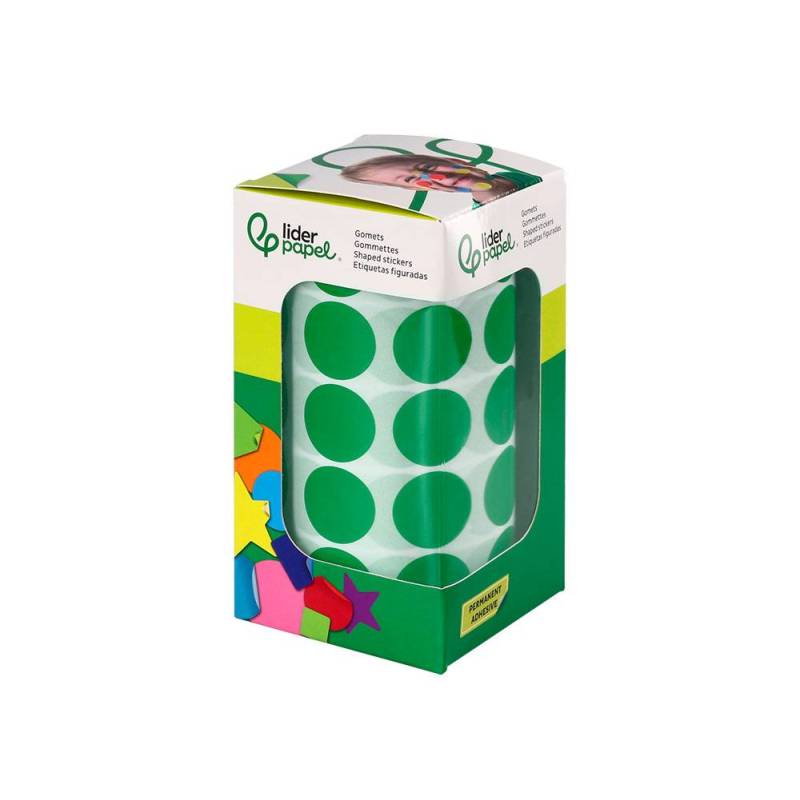 GOMETS MARCA LIDERPAPEL AUTOADHESIVO S CIRCULOS 20 MM VERDE ROLLO DE 2000 UNIDADES EN CAJA DE CARTON