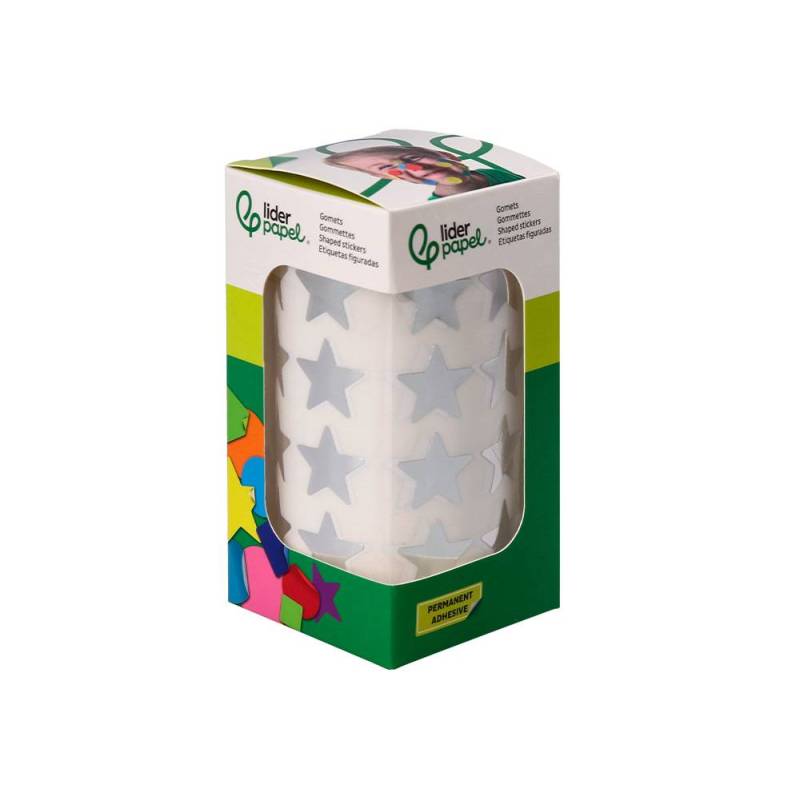 GOMETS MARCA LIDERPAPEL AUTOADHESIVO S ESTRELLAS PLATEADAS 20 MM 1500 UNIDADES EN CAJA DE CARTON