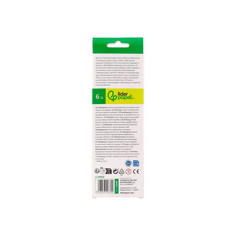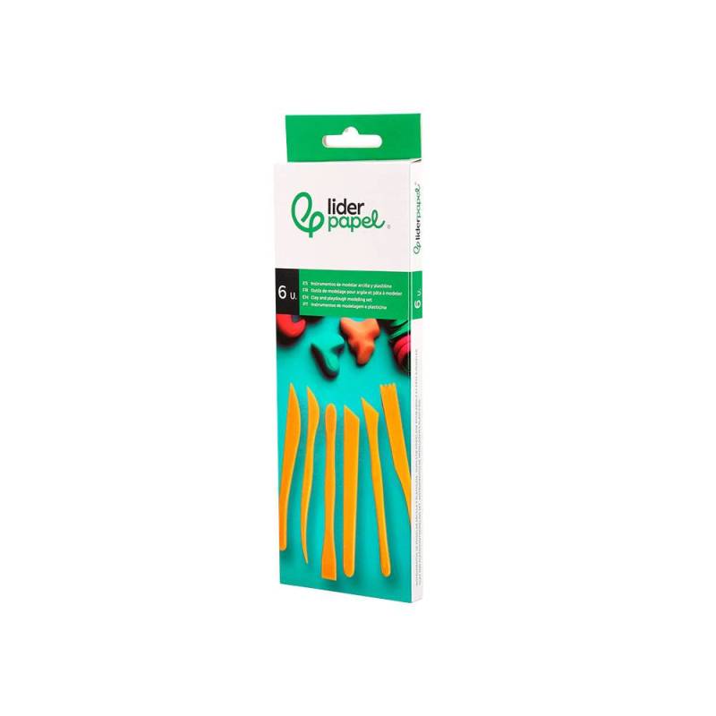 INSTRUMENTOS DE MODELAR MARCA LIDERPAPEL PARA ARCILLA Y PLASTILINA CAJA DE 6 PIEZAS
