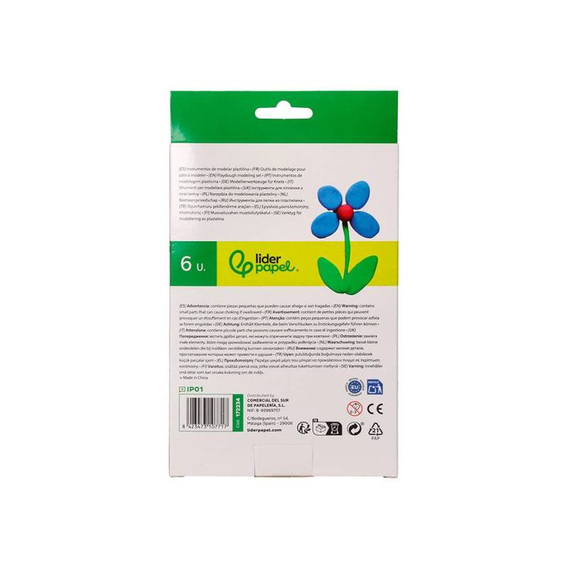 INSTRUMENTOS DE MODELAR MARCA LIDERPAPEL PARA PLASTILINA DE PLASTICO CAJA DE 6 PIEZAS