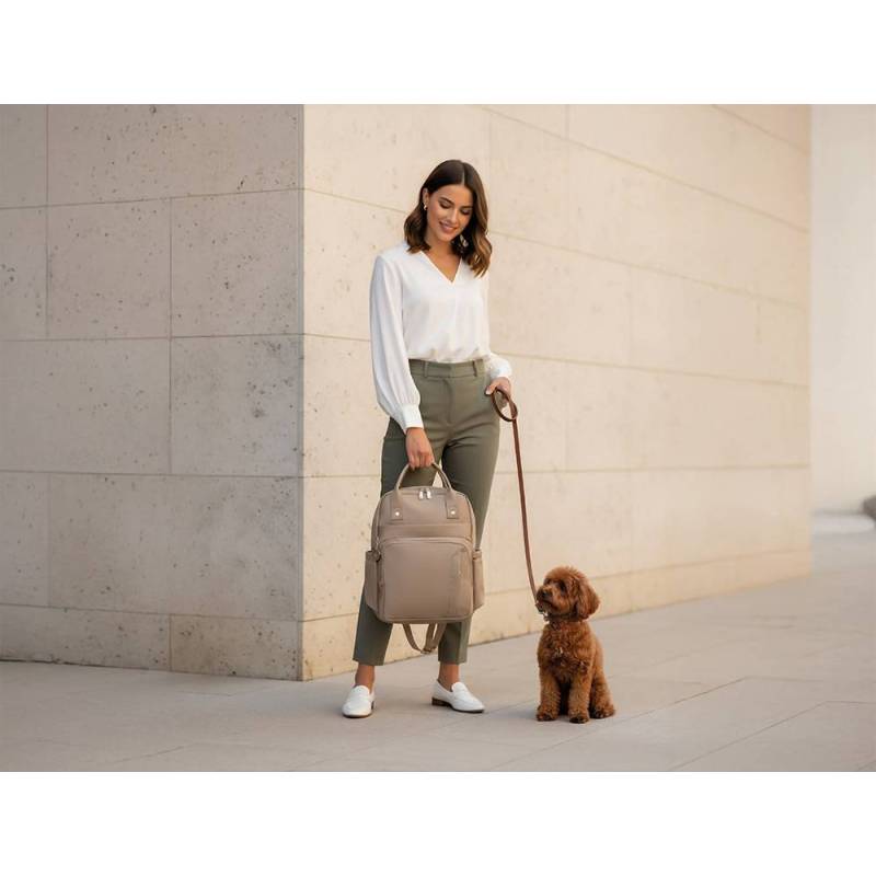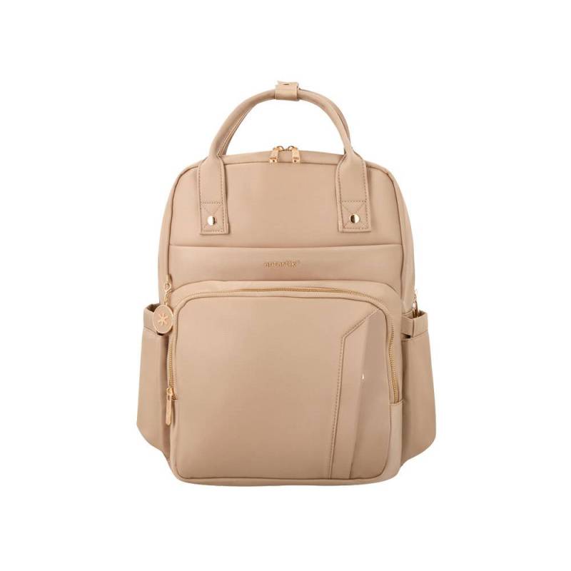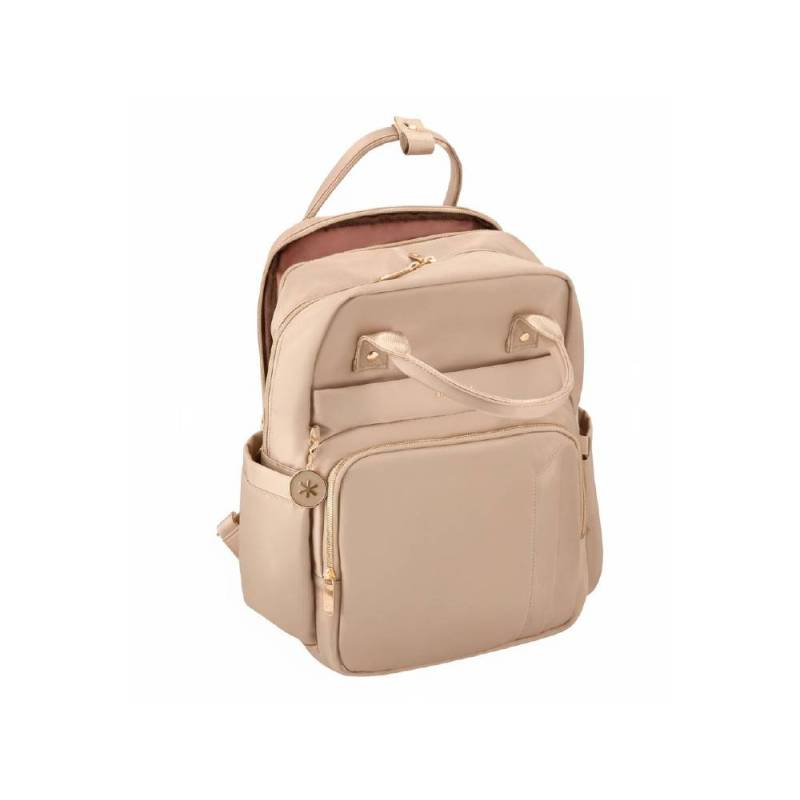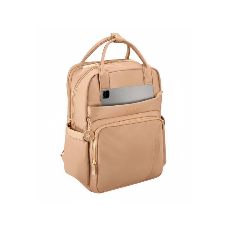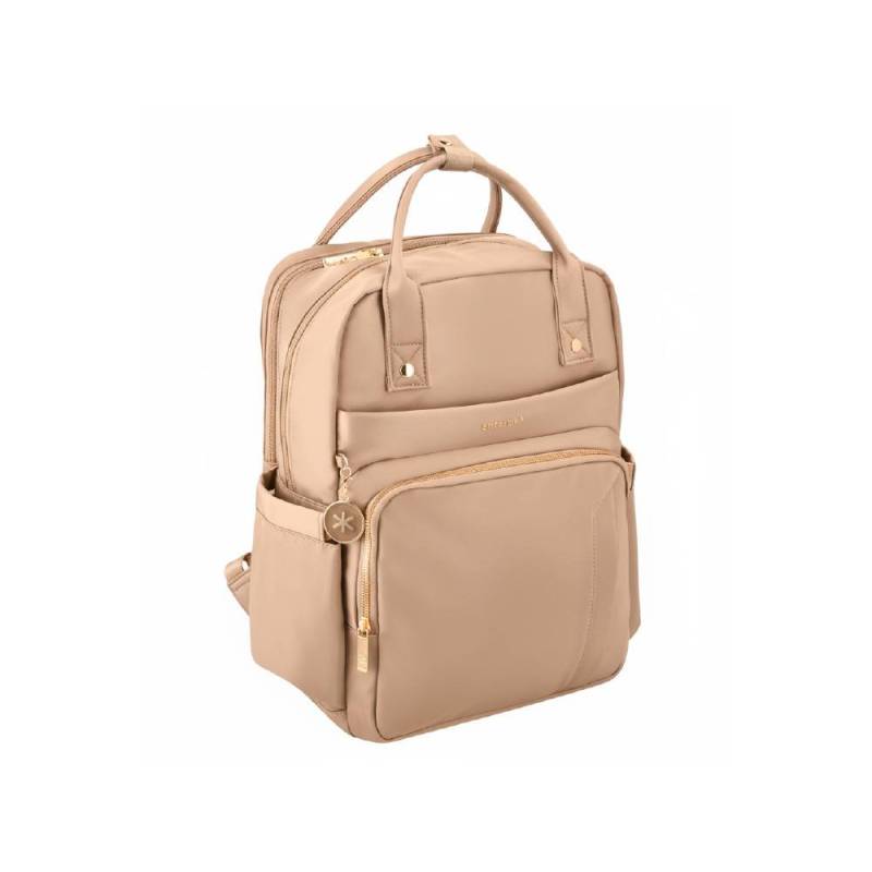 La mochila Antartik Nova en color beige combina funcionalidad y estilo en un diseño compacto y resistente. Con una estructura de 4 compartimentos bien distribuidos, permite organizar tus pertenencias de forma eficiente, incluyendo un bolsillo acolchado especial para portátil y espacios destinados a documentos y accesorios. Su tejido 100% nailon ofrece alta durabilidad y resistencia al agua, protegiendo el contenido frente a condiciones climáticas adversas y facilitando su limpieza.