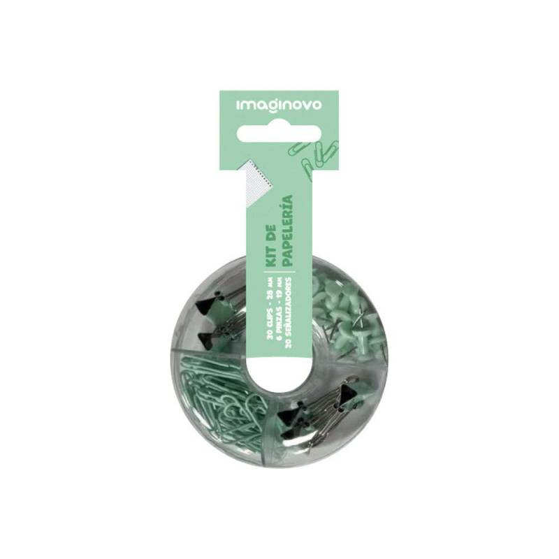 Este set de papelería Imaginovo ofrece una solución completa para la organización y sujeción de documentos, combinando funcionalidad y un toque de color verde que aporta frescura a tu espacio de trabajo. Con clips, pinzas y chinchetas fabricados en materiales resistentes, es una opción práctica tanto para oficinas como para entornos escolares o el hogar.