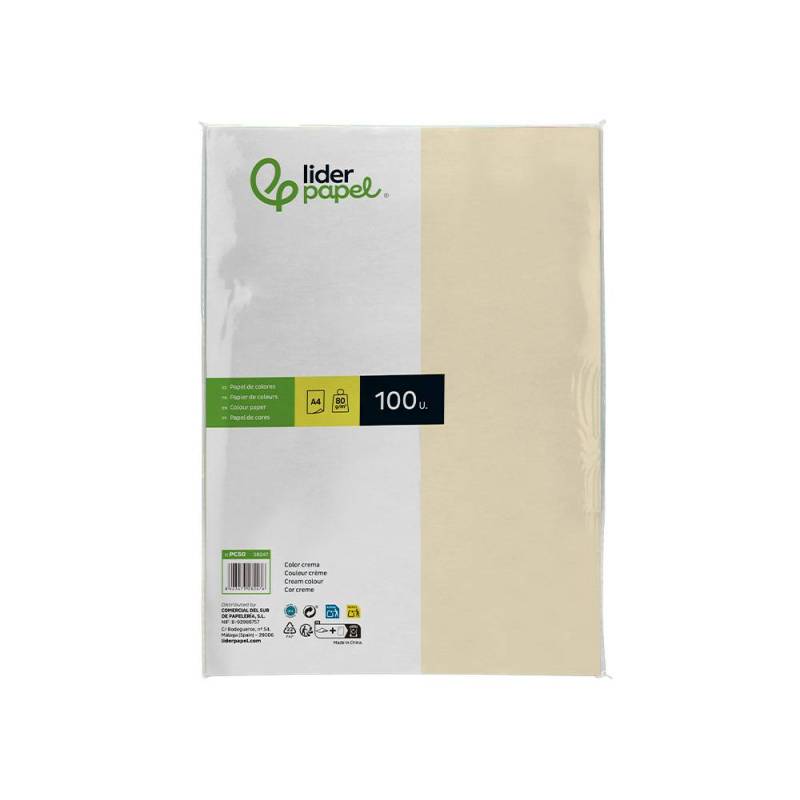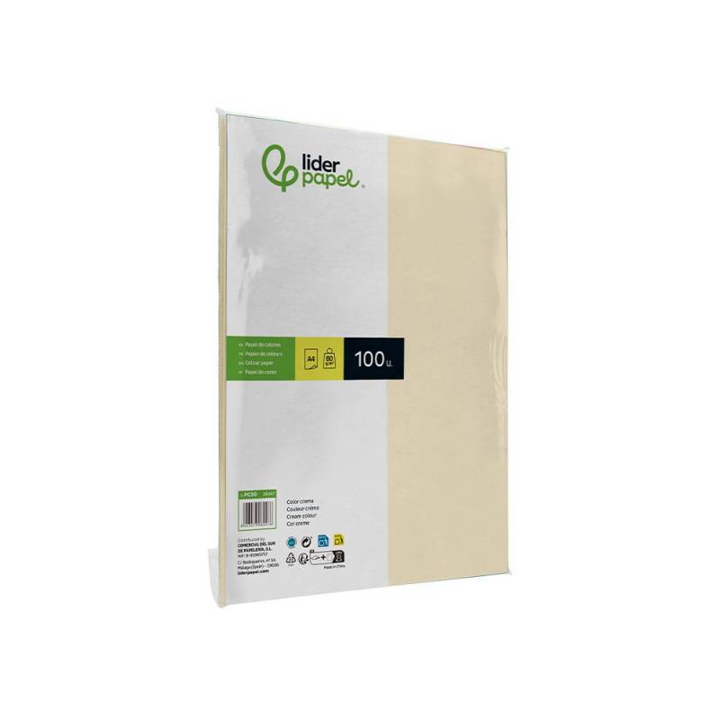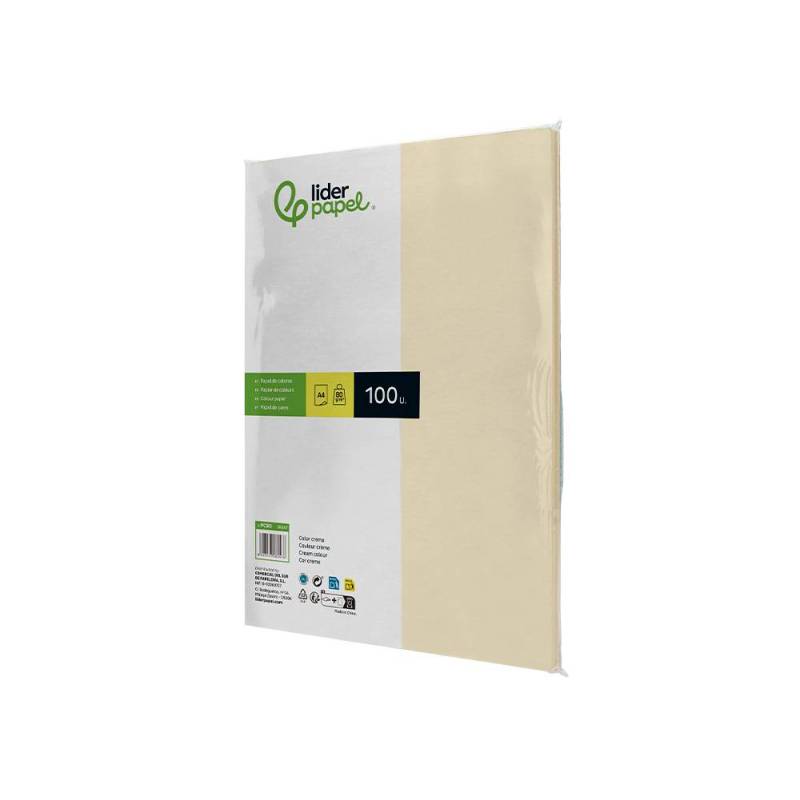 Papel color de la marca Liderpapel. Gramaje 80 g/m2. Cuenta con 100 hojas. Tamaño Din A4. Idóneos para impresoras ink-jet, láser y fotocopiadoras. Color crema.