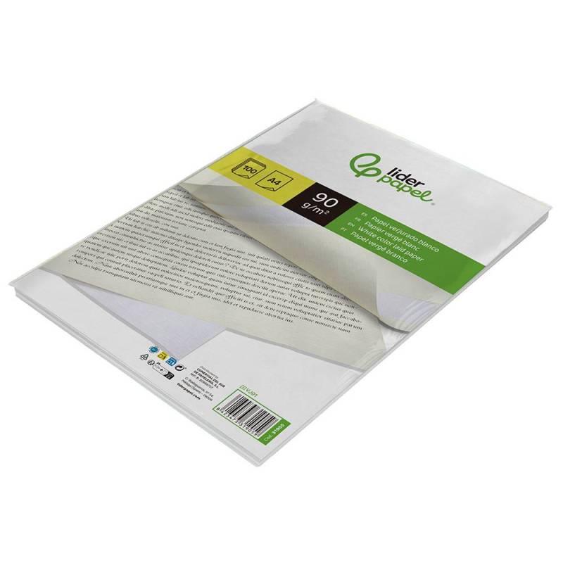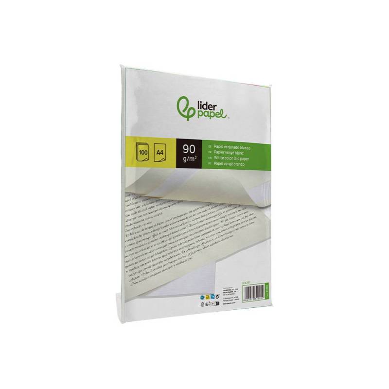 Papel verjurado liderpapel tamaño A4 90g/m2 blanco paquete de 100 hojas.