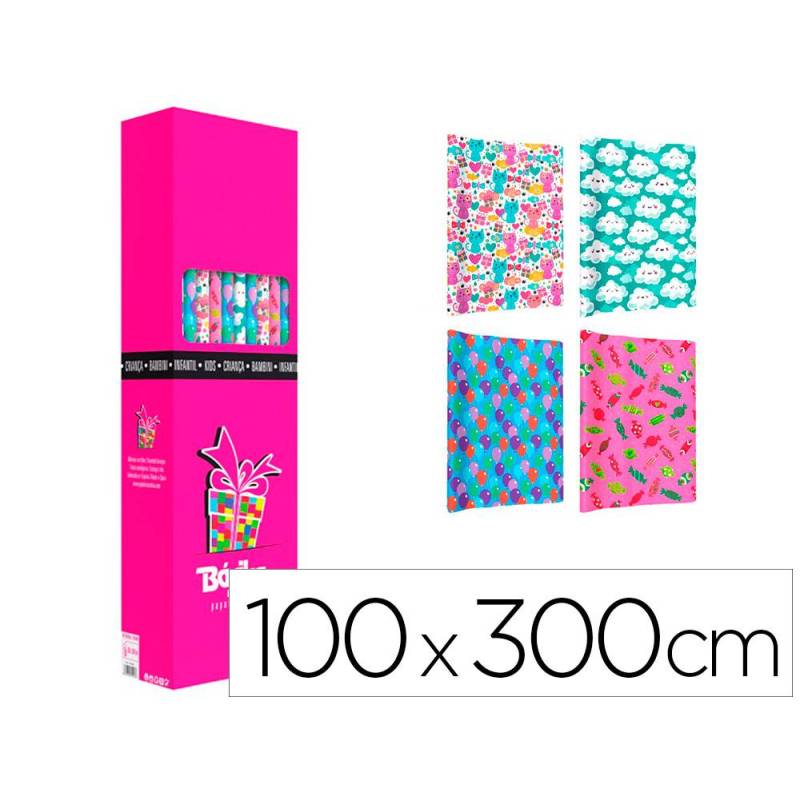 PAPEL DE REGALO MARCA BASIKA INFANTIL ROLLO DE 100 X 300 CM MODELOS SURTIDOS