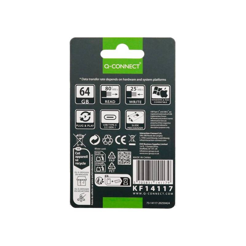 MEMORIA USB MARCA Q-CONNECT FLASH DRIVE 64 GB 3.2 TIPO C
