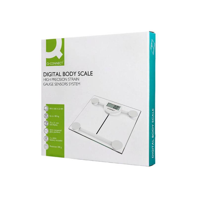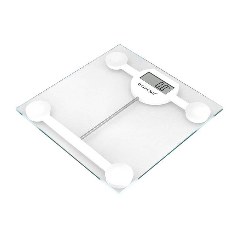 BASCULA BAÑO MARCA Q-CONNECT DIGITAL CON PANTALLA LCD PRECISION 100 GR CAPACIDAD DE 5 KG A 180 KG 300X300X22MM