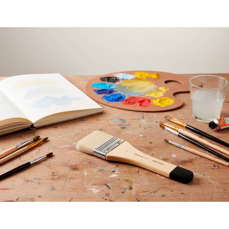 La brocha paletina plana Liderpapel de 65 mm con pelo de cerda certificado FSC es una herramienta ideal para artistas y aficionados que trabajan con pinturas densas como óleos y acrílicos. Su diseño ancho y plano permite una aplicación rápida y uniforme en superficies medianas, facilitando tanto técnicas de empaste como la cobertura eficiente de grandes áreas. La calidad del pelo natural de cerda garantiza durabilidad y un buen control en la distribución de la pintura.