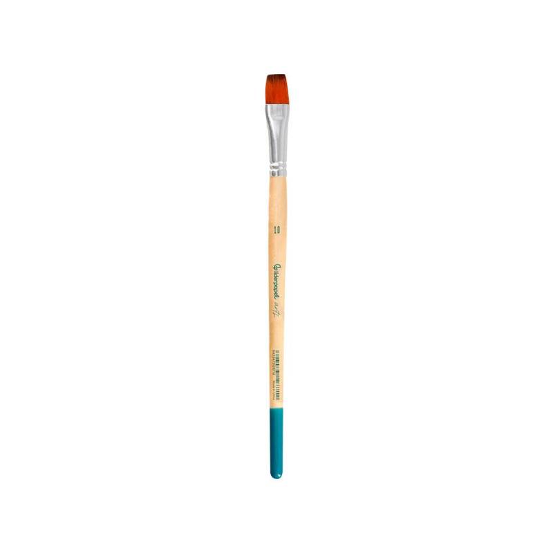 Este pincel de la marca Liderpapel, número 10 con punta plana, está diseñado específicamente para su uso con pinturas acrílicas, acuarelas y gouache/témpera. Fabricado con pelo sintético certificado FSC, ofrece una combinación equilibrada de resistencia, flexibilidad y durabilidad, permitiendo un control preciso y una aplicación uniforme del color. Su forma plana es ideal para crear trazos amplios y definidos, adaptándose a distintas técnicas artísticas.