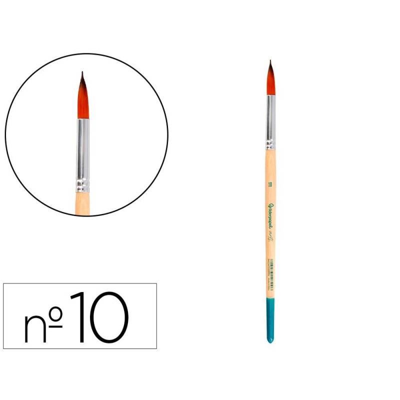Este pincel para pintura acrílica y acuarela de la marca Liderpapel, modelo nº 10 con punta redonda, está especialmente diseñado para ofrecer un rendimiento óptimo en diversas técnicas artísticas. Con filamentos sintéticos certificados por FSC, combina resistencia, flexibilidad y precisión, facilitando la aplicación controlada y uniforme del color, ideal para trabajos detallados y trazos delicados.