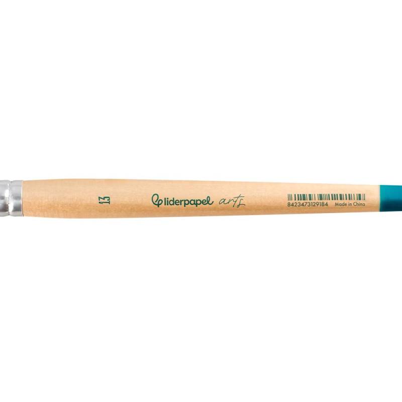 Este pincel para pintura acrílica y acuarela presenta una punta filbert o lengua de gato, ideal para artistas que buscan versatilidad y precisión en sus trabajos. Fabricado con pelo sintético certificado FSC, ofrece una excelente resistencia, flexibilidad y control, facilitando tanto trazos amplios como detalles finos. Su tamaño número 13 resulta adecuado para cubrir áreas medianas sin perder la capacidad de definición, adaptándose a diversas técnicas y estilos.