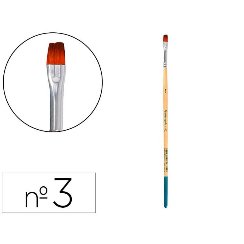 Este pincel número 3 de punta plana está especialmente diseñado para el uso con pinturas acrílicas, acuarelas y gouache/témpera. Fabricado con pelo sintético certificado FSC, ofrece una combinación óptima de resistencia, flexibilidad y control para quienes buscan precisión en sus técnicas de pintura. Su forma plana facilita la creación de trazos amplios y definidos, adaptándose tanto a detalles finos como a áreas más amplias.