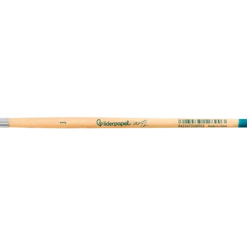 El pincel para pintura acrílica y acuarela Liderpapel nº 3 con punta redonda y pelo sintético certificado FSC es una herramienta diseñada para ofrecer precisión y durabilidad en técnicas artísticas que utilizan pinturas acrílicas, acuarelas y gouache. Su diseño combina resistencia y flexibilidad, facilitando un control óptimo del trazo y una aplicación uniforme del color, ideal para trabajos detallados y líneas definidas.