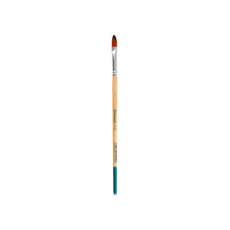 Descubre un pincel diseñado para ofrecer precisión y versatilidad en tus trabajos artísticos. Este pincel nº 5 con punta filbert o lengua de gato está elaborado con pelo sintético certificado FSC, ideal para técnicas con pintura acrílica, acuarela y gouache. Su forma particular combina lo mejor de los pinceles planos y redondos, facilitando tanto trazos amplios como detalles finos, perfectos para artistas que buscan controlar y dar vida a sus creaciones con facilidad.