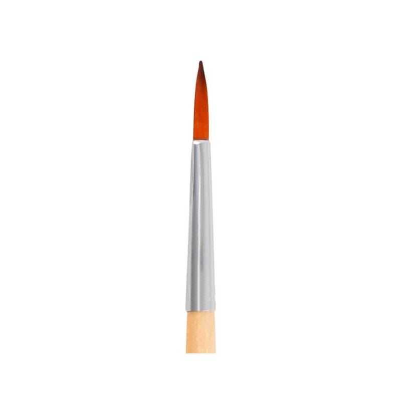 Este pincel de punta redonda número 5 está especialmente diseñado para pintura acrílica, acuarela y gouache/témpera, ofreciendo un equilibrio ideal entre resistencia, flexibilidad y precisión. Fabricado con pelo sintético certificado FSC, garantiza un origen sostenible y un rendimiento óptimo en la aplicación del color, manteniendo la forma incluso con diferentes cantidades de agua.