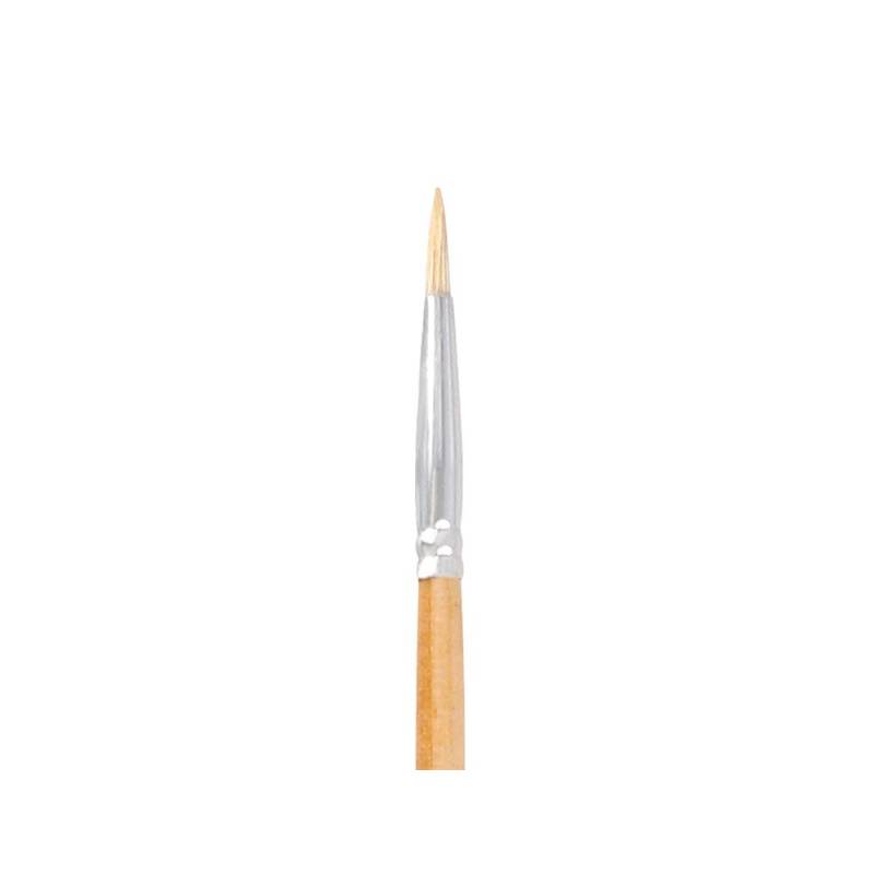 Este pincel de la marca Liderpapel, número 000 con punta redonda, está especialmente diseñado para su uso en pintura al óleo y acrílica. Fabricado con pelo de cerda natural certificado FSC, ofrece una combinación ideal de durabilidad y capacidad para retener pintura, permitiendo una aplicación precisa y uniforme. Su tamaño pequeño y punta afilada lo convierten en la herramienta perfecta para trabajos detallados y acabados finos en diversas técnicas pictóricas.