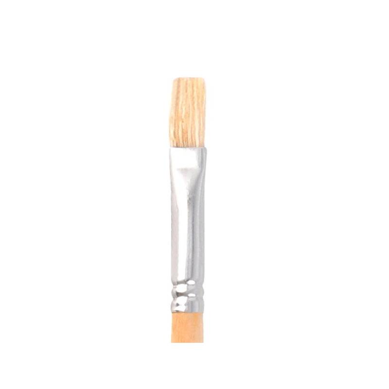 Este pincel nº 7 de punta plana está especialmente diseñado para pinturas al óleo y acrílicas, combinando durabilidad y precisión en cada trazo. Fabricado con pelo de cerda natural certificado por el FSC, garantiza un rendimiento óptimo y un compromiso con la sostenibilidad ambiental. Su forma y rigidez permiten aplicar grandes cantidades de pintura y crear efectos texturizados y líneas definidas, ideales para técnicas expresivas y detalladas.
