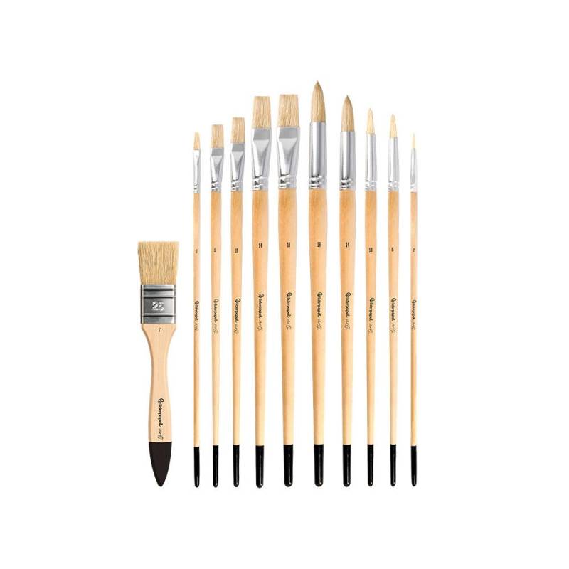 Este set de pinceles de pelo de cerda natural en bolsa de 11 unidades ofrece una solución completa para artistas y aficionados que desean herramientas duraderas y versátiles. Con puntas surtidas, estos pinceles permiten una amplia variedad de trazos y detalles, adaptándose a diferentes técnicas pictóricas como óleo, acrílico y gouache. Además, cuentan con la certificación FSC, que asegura un compromiso con la gestión sostenible de los recursos forestales utilizados en sus materiales.