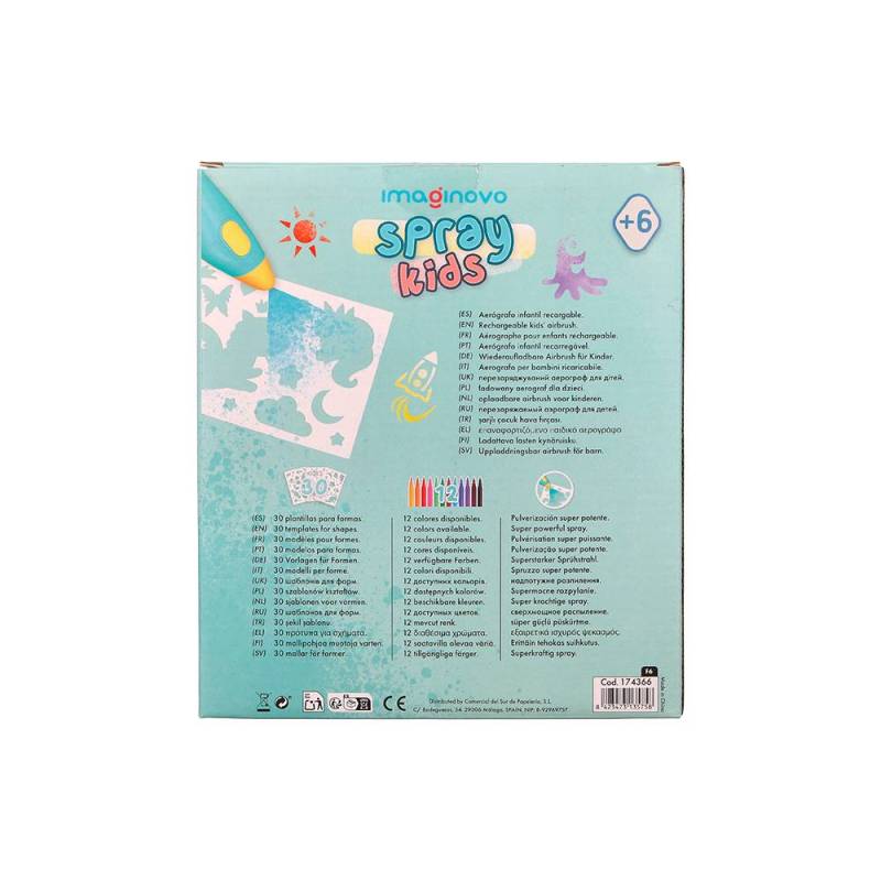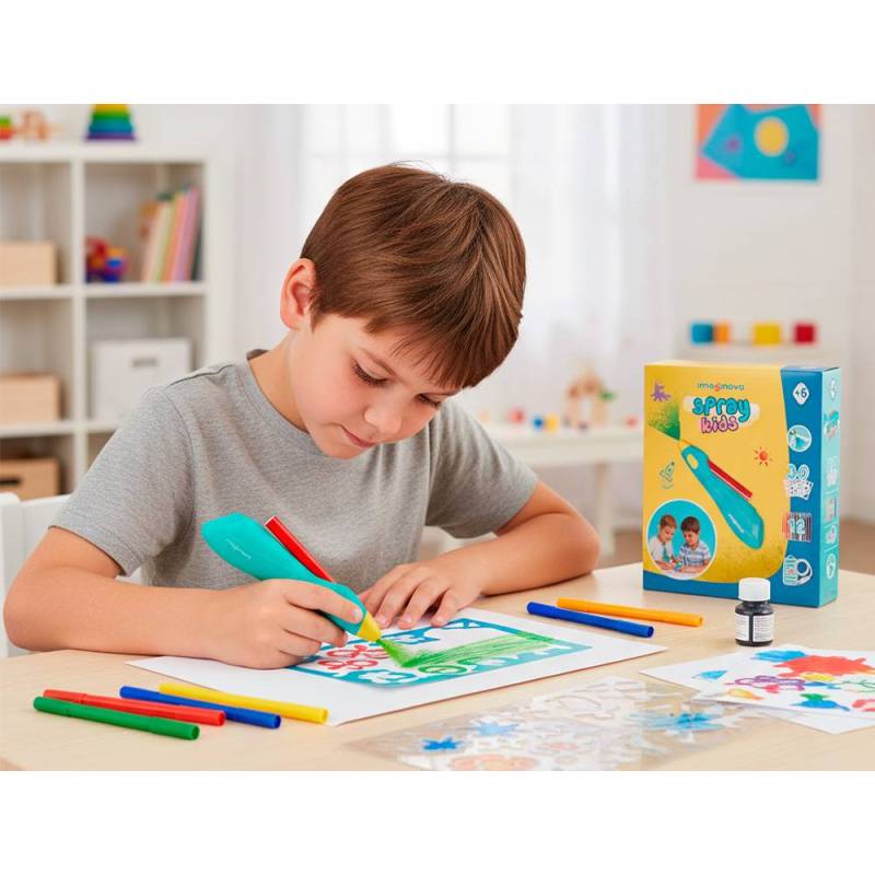 El aerógrafo infantil Imaginovo recargable con USB es una opción innovadora y práctica para que los niños a partir de 6 años experimenten con la técnica de aerografía de forma segura y divertida. Gracias a su diseño portátil y libre de cables, permite crear dibujos vibrantes utilizando 12 rotuladores de colores surtidos y 30 plantillas reutilizables con diversos motivos, ideales para estimular la creatividad y la coordinación motora.