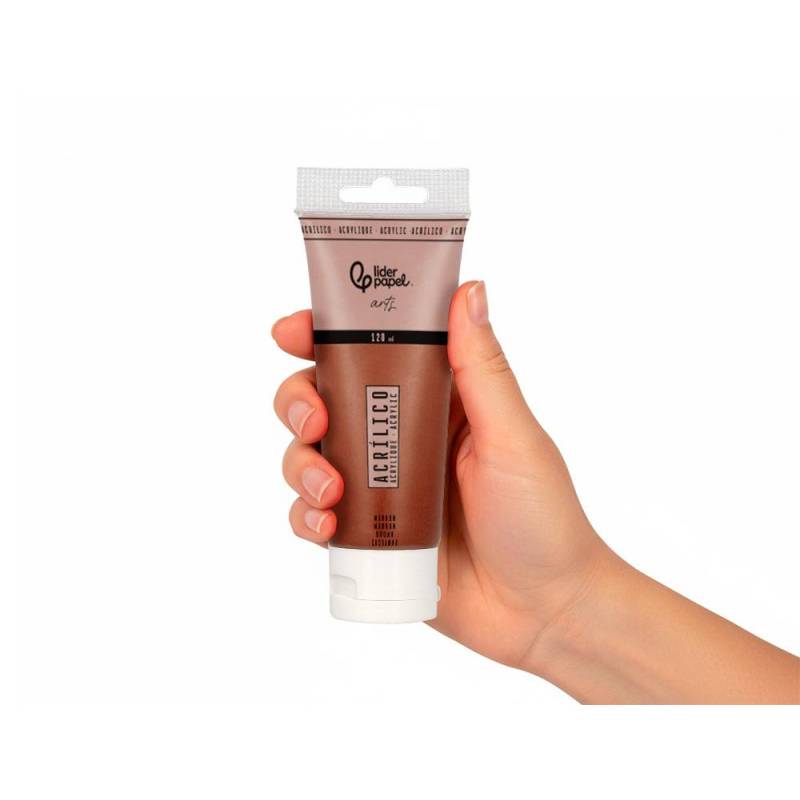 La pintura acrílica Liderpap en tubo de plástico de 120 ml color marrón es una opción ideal para quienes buscan un producto versátil y de alta calidad para trabajos artísticos y manualidades. Su fórmula a base de agua garantiza un secado rápido y una excelente durabilidad una vez seca, ofreciendo un color marrón intenso y opaco que se adapta a diversas técnicas y soportes. - Composición: Base acuosa con pigmentos de alta concentración que proporcionan un color vibrante y uniforme.